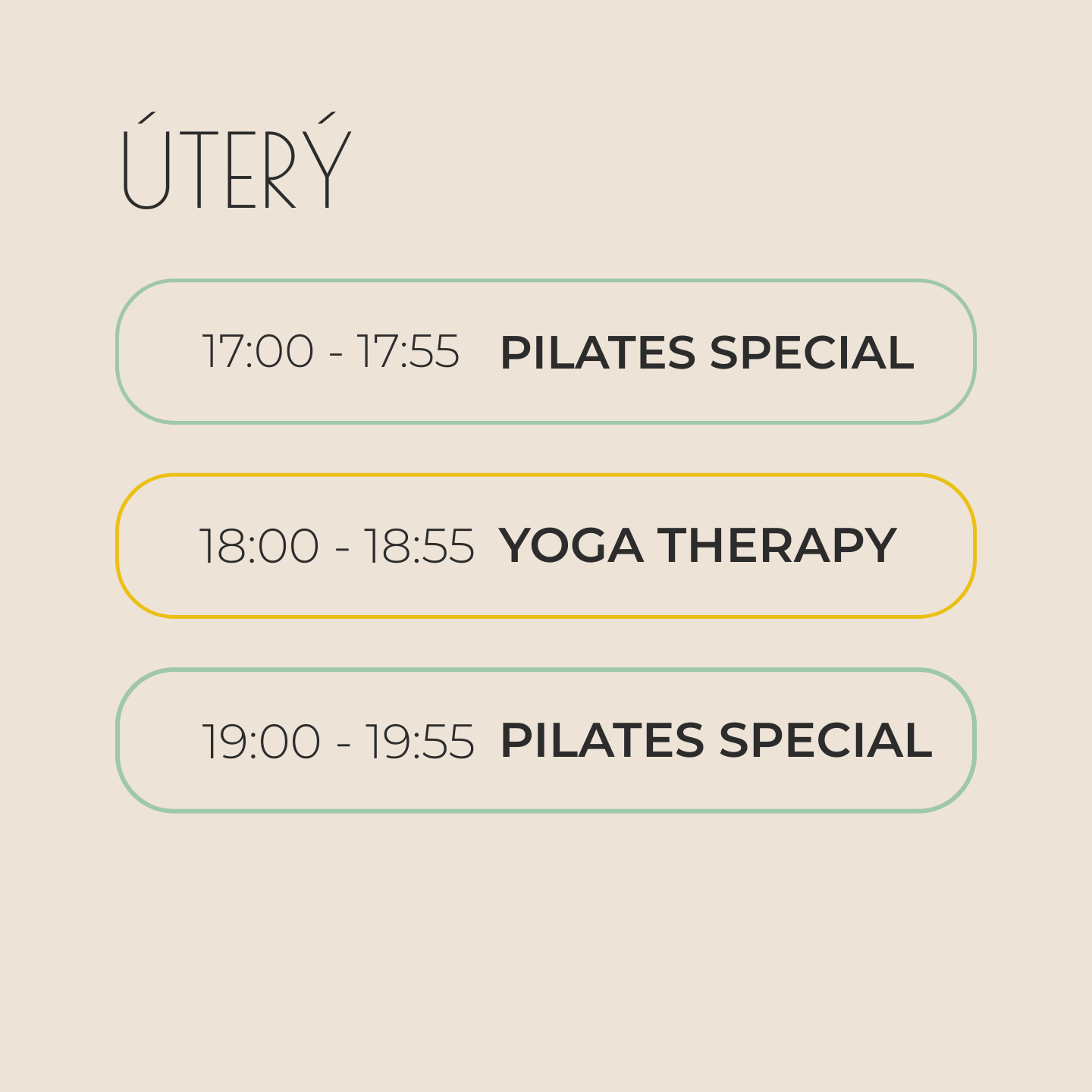 - VHODNÉ PRO: ty, kteří se na klidnější body&mind cvičení ještě necítí, ale pořád chtějí dbát na správnou techniku cviků a ostatní benefity, které pilates přináší